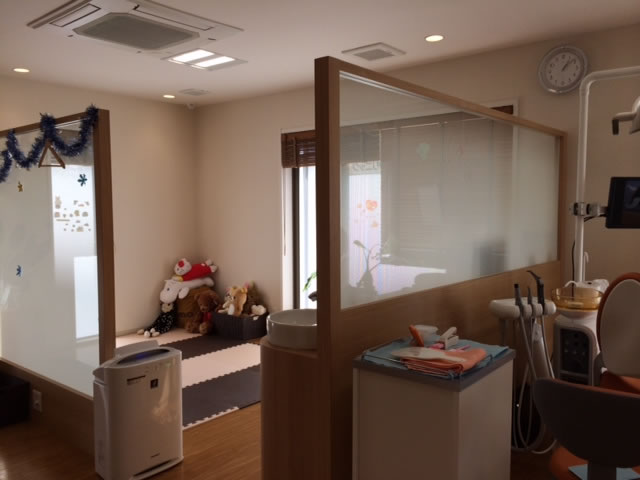 | お子さまの遊戯場所も設置!治療中のお母さんもお子さんを確認できるような治療環境のつくりになっております。ご家族で一緒に治療にいらしてください。 |
