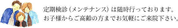 治療はむし歯治療、予防、定期検診、歯磨き指導など行います。お気軽にご相談下さい。 |